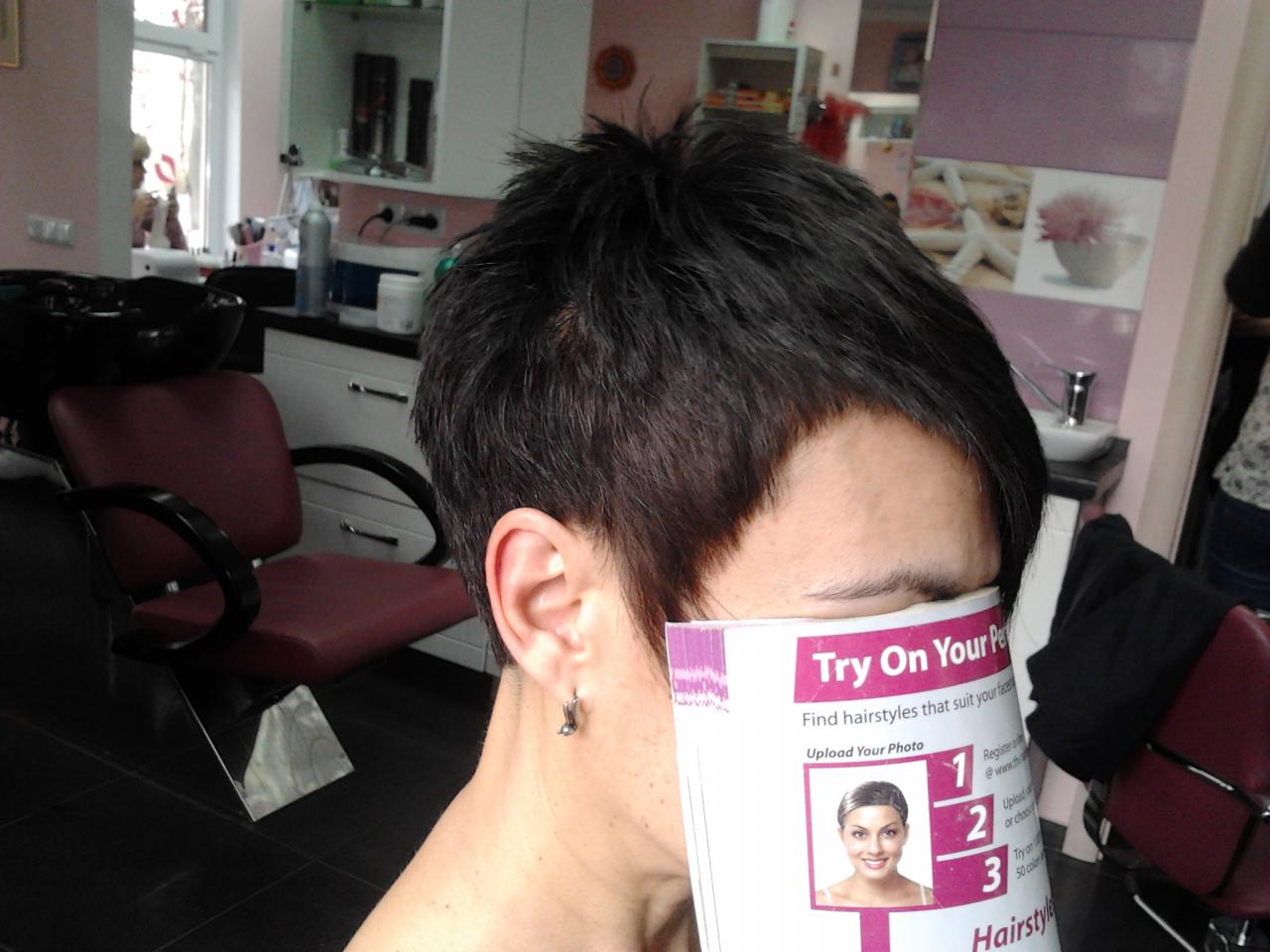 Ассиметричная короткая стрижка, с учетом зароста волос на затылке