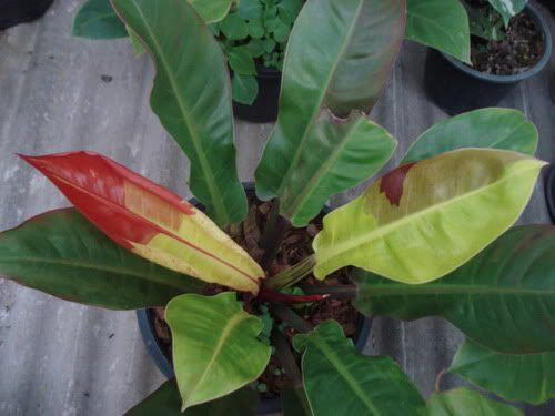 Мой филодендрон краснеющий стал фифилей стыдливо рдеющим. Чего-то взял, и отрастил такой лист после того, как я его тяжеловеса привязала к шурупу.