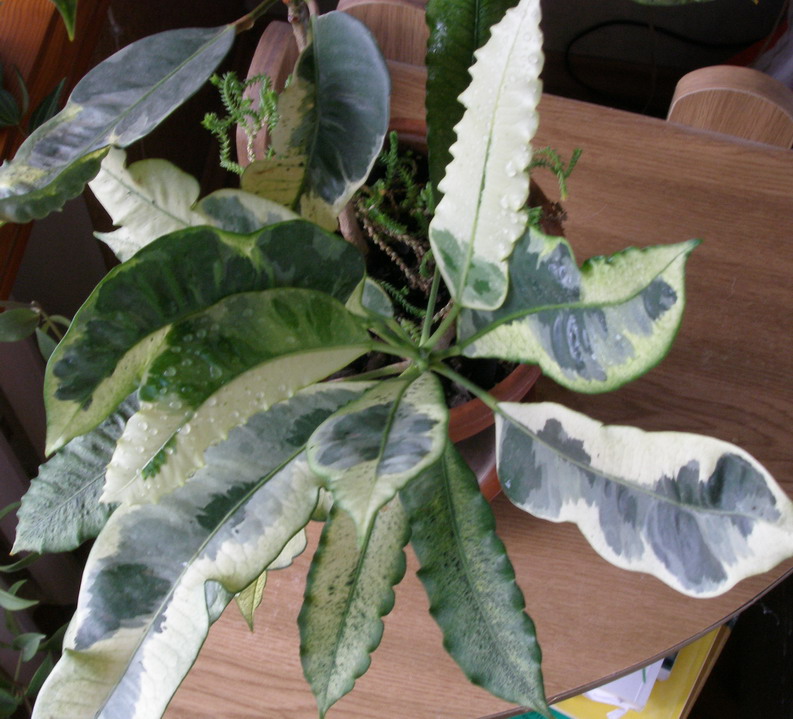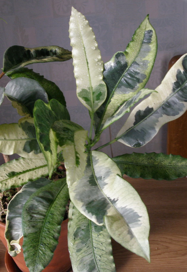 Я оставила только этот из всех кротонов, он удивительный- двух похожих листиков нету, и из белого
