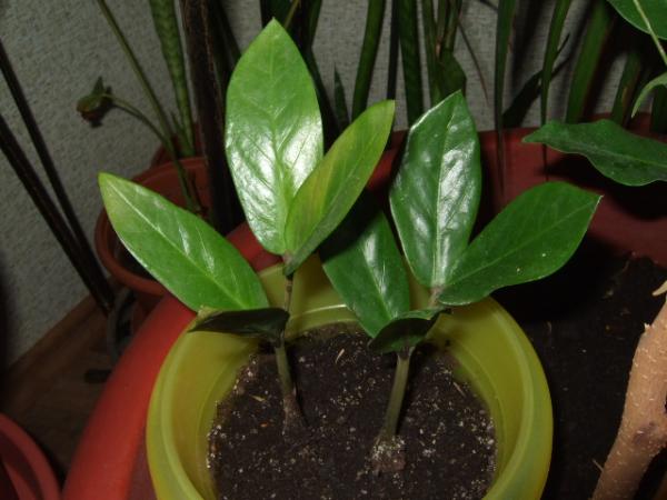 Я писала, что после пересадки и заглубления до самых листьев , мой замик начал медленно , но верно, прощаться с жизнью. Я его вытащила из земли, убедилась, что несколько белых корешков имеются и посадила вновь, но так, что все корневище было поверх земли, углубила только корни и хорошо полила. На мою радость ожил, сейчас выросли 4 новых листа - крепких и здоровых! Но опять наступила пауза в росте. Но я помню, девочки писали, что на его родине сейчас зима, растение отдыхает. Поливаю редко, но очень обильно( типа зимнего дождя в Южной Африке), теперь жду африканскую весну