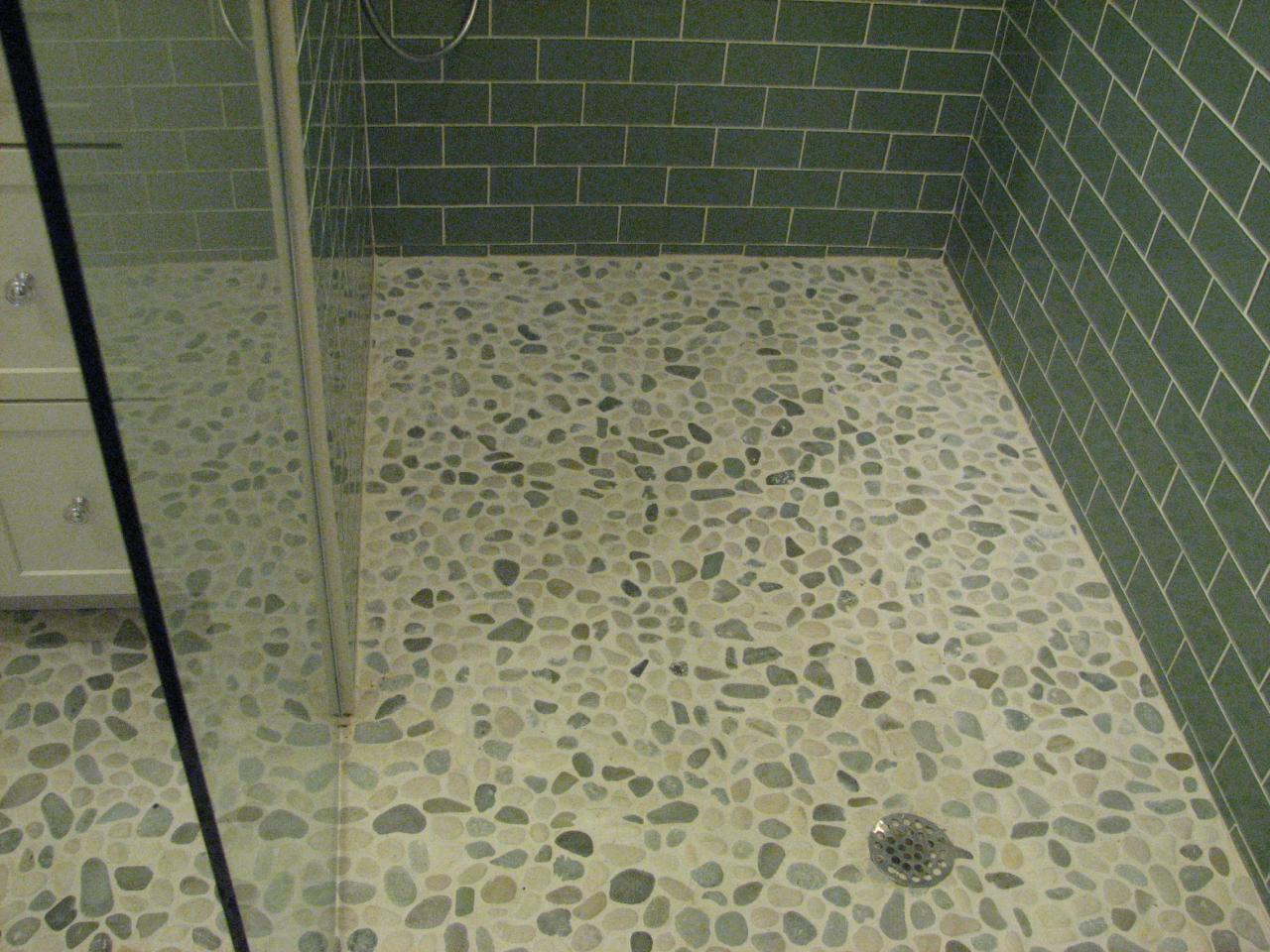 Не знаю подойдёт ли для пола декоративная галька на сетке, мне кажется, расстояния между камешками слишком большие