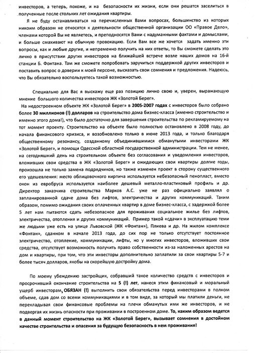 Если я ошибаюсь и приведенные мной здесь факты отсутствия централизованного и непрерывного обеспечения указанных строительных работ являются неблагоприятным стечением обстоятельств , как то : не в то время я и другие инвесторы посещали стройку, не то и не там ваши люди фотографировали , ковш для заливки раствора привезли новый про запас и так далее. Не мне вас учить этому. Успокойте инвесторов предоставлением заводских сертификатов качества бетона, датированных июлем и августом , нарядами , актами выполненных работ и так далее .