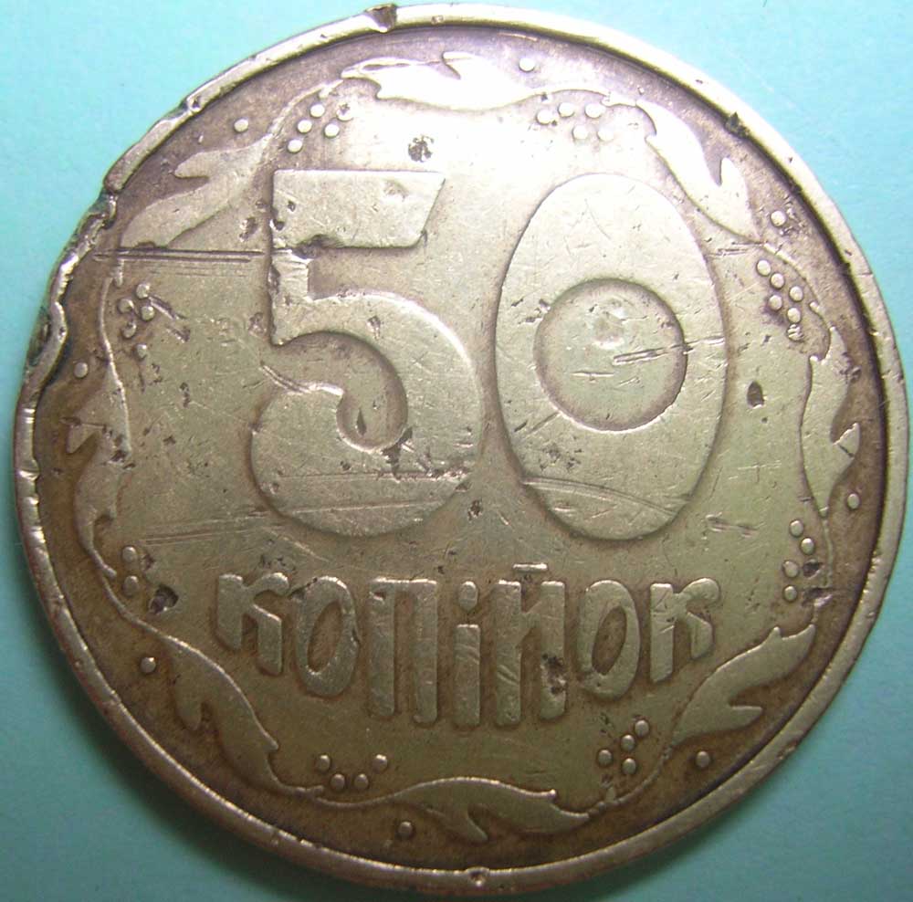 50 коп. - "донецкий фальшак" - от 15 грв., но Ваша от 5 грв. сильно убитая.