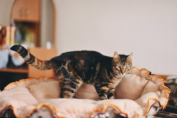 У Рыси очень интересный черепаховый окрас, напоминающий смесь восточных специй и пряностей. Цветовые оттенки в ее бархатной шубке хорошо гармонируют между собой и действуют умиротворяюще. Завораживает яркость красок, такая солнечная, теплая и уютная, все краски лета в одной кошке!