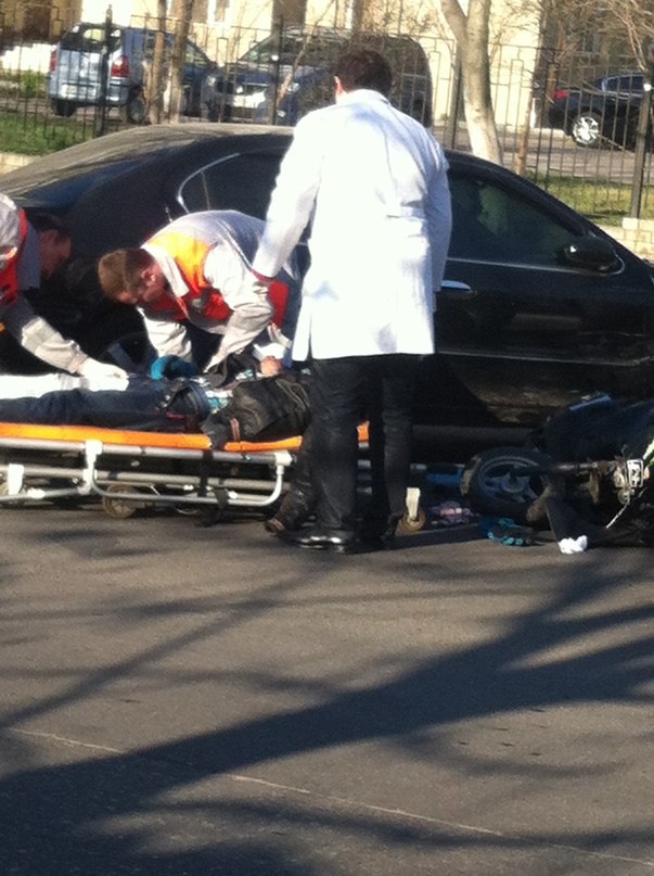 Водитель мопеда жив,думаю и надеюсь,что повредения не оооочень серьезные..... Был в сознании,когда бинтовали ногу ,кричал..