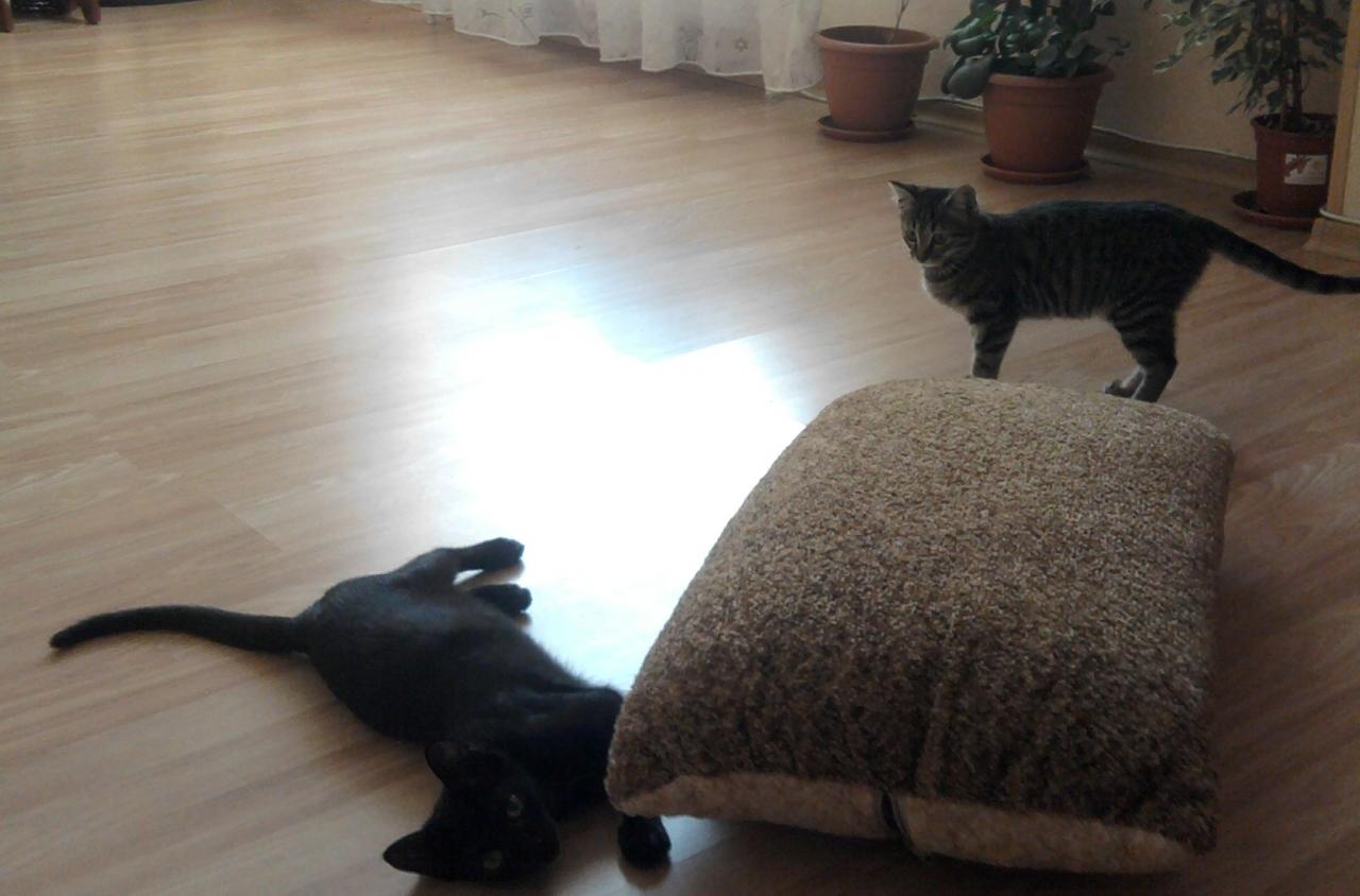 Маленькие игруночки. Подобрали их в парке. Одного собаки успели съесть. Но 2 красавца удалось спасти. Теперь ищем им заботливых и любящих хозяев. Кушают все. В туалетик тоже в лоточек ходят. Умнички просто. Черненький - мальчик - любит обнимашки и целовашки. Серенькая - девочка - более скромна (настоящая леди). Она просто еще не сильно привыкла к нам. Видимо люди их серьезно обидили, т.к. бедняжки такие трусишки. Подарят мир позитива всем, кто с ними будет ласков. Черненький так меня очаровал, что даже хочу себе оставить, если не найду хозяев, а девочку надо пристроить. Вдвоем они квартиру на уши поднимают своими играми. Вымыты и избавлены от паразитов ждут вас.