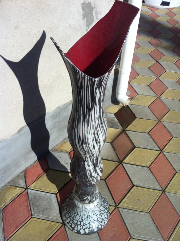 отбилась верхняя часть круглой стеклянной вазы. Высота вазы 1м, диаметр от 30 до 10 см.