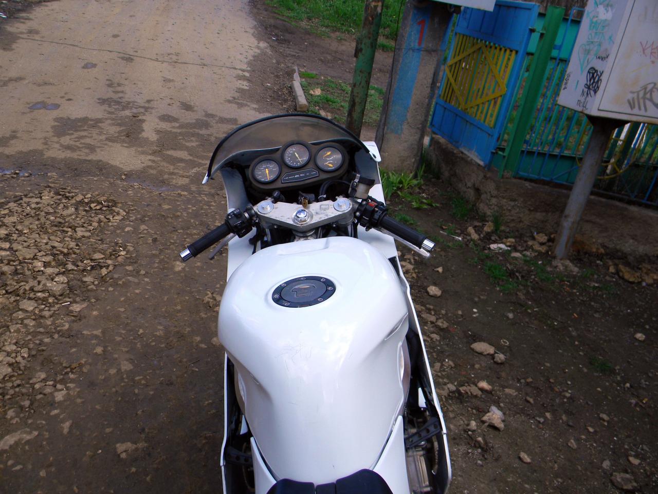 Продам honda cbr 400 rr 1989 года вып. Поставлен на учет в г.Одессе 20.02.2013 г. Новая резина Dunlop Sportmax полуслик, новый выхлоп MORIWAKI EMU, тюнингованные ножки пилота, расчипован ( M-MAX) снята отсечка едет под 230 км.ч. , новый аккумулятор и свечи. гос номер сделан под заказ. Мотоцикл обслужен, заменены все расходники, отсинхронизированны карбюраторы. Проверены зазоры клапанов и компрессия (12 кг.см). Переделан передний пластик, фары и приборка от джиксера остальной родной хондовский, цвет белый.