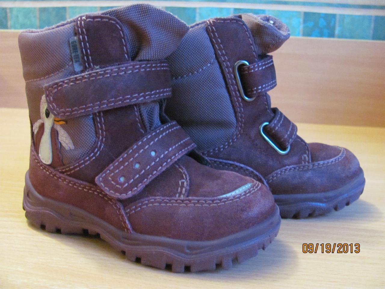 Продам зимние сапожки фирмы SuperFit, размер 23. Состояние на 4, затерты чуть-чуть носки. Система Goretex. Легкие, теплые и удобные.