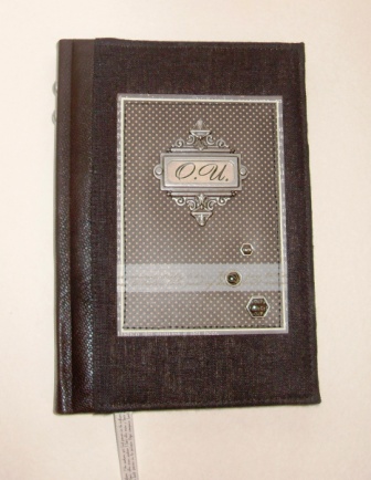 В комплект к ежедневнику сотворила и обложечку для документа, она застегивается на липучку, декорирована х/б кружевом и брадсами. Форзацы из скрапбумаги, прозрачные кармашки.
