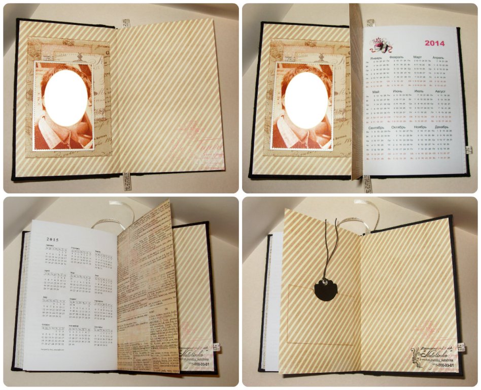 Решила отвлечься и сделать хоть что-то для себя, любимой))) Получился ежедневник на 2014 год, датированный, формат А5. В нем 220 листов, т.е. 440 страниц итальянской дизайнерской бумаги производства Fedrigoni, а именно:
