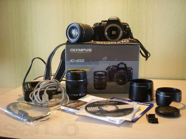 Продам зеркалку Olympus Е-450 Double Zoom Kit (ED 14-42mm/ED 40-150mm) Полный заводской комплеклект: коробка, кабель для вывода изображения на телевизор, кабель к компьютеру, 2 батареи, 2 бленды, 2 объектива! Идеальное состояние!!! Прошу 2500, торг уместен.
