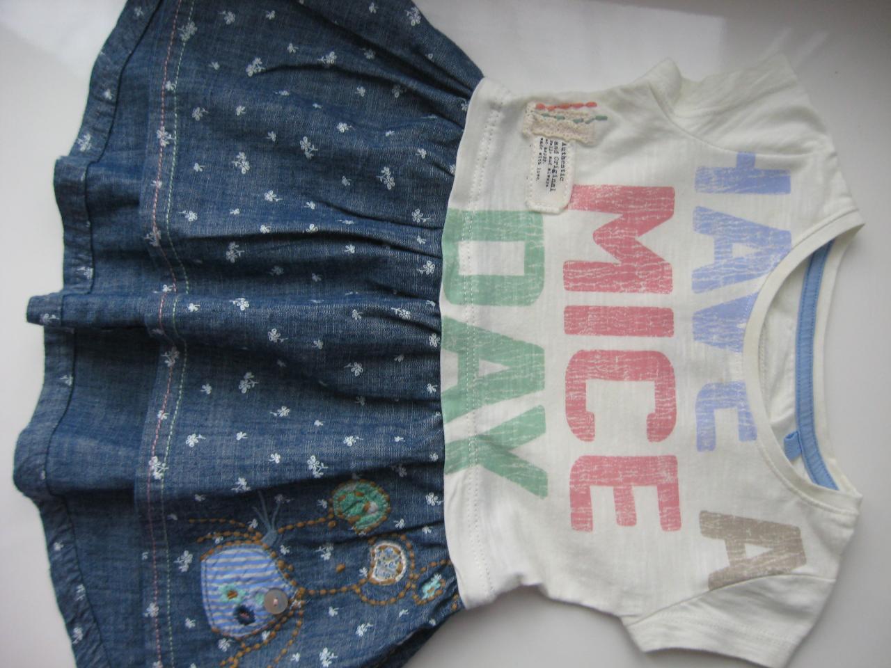 Фото 1 3-6 месяцев, очень модный, можно носить где то до 8 месяцев, так как ткань тянется, одевали несколько раз, состояние нового