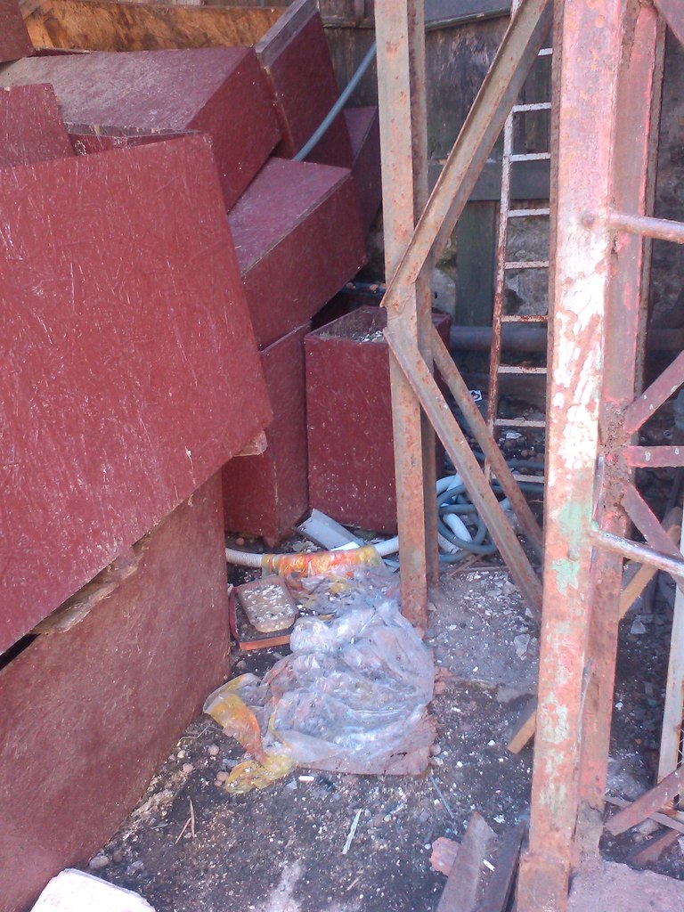 На днях случайно попала во двор углового дома Польская/Бунина. Там валяются кучи мусора, строй-матералов, камней, железяк, разбитые стёкла валяются прямо посреди двора.. И среди всего этого ужаса живут коты, кошки, котята..