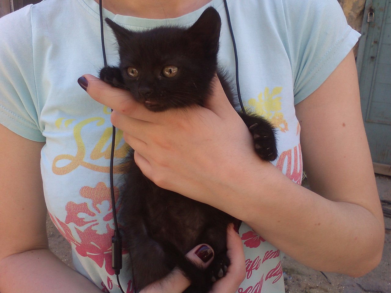 1. в руки даётся только один котёнок, чёрненькая девочка, 2 месяца. вчера мне позвонили, хотели забрать, сегодня я поехала в тот двор, словила её, но на данный момент те люди отказались взять, по-этому прошу помощи репостом вконтакте http://vk.com/delfin_i_rusalka?w=wall234406430_784