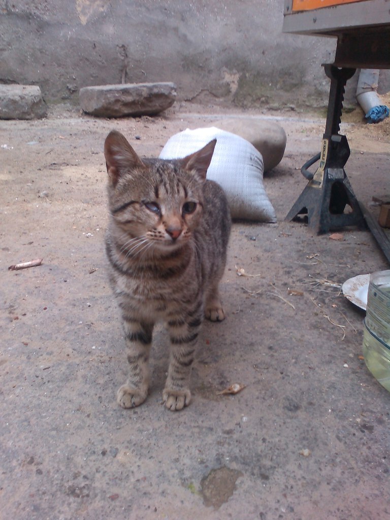 3. так же там есть котёнок-подросток, родился здесь же и по словам работающей там женщины, котята тогда родили практически в стекловате, она попала ему в глаз и теперь с ним проблемы. он явно слепой, но на вид сложно сказать нужна ли помощь и лечение. и рассмотреть он тоже не даёт, безумно дикий, сегодня получилось буквально на секунду схватить его в руку, но он зашипел, расцарапал мне руку и вырвался..