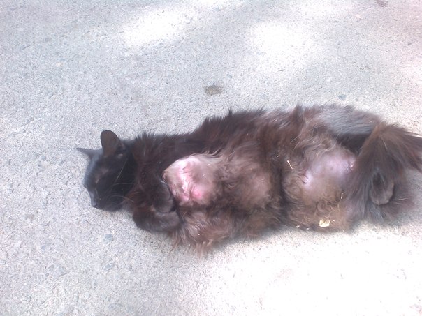 "SOS!!! По улице Степовой, прямо на трОтуаре, напротив мастерской по ремонту обуви, мучительно умирает кошка. Я поначалу думала что она беременная, спросила у сапожника, он сказал что у нее рак груди... Он ходил в клинику, просил чтоб усыпили, ему сказали 250 грн. Мужчина сам выхаживает и помогает котам и собакам с улицы и не в состоянии потянуть всех. Соседи тоже не проявили желания скинуться на усыпление кошки. Может есть клиника, где ее усыпят за более маленькую сумму, или бесплатно? Ребята, кто может помочь?! На животное больно смотреть..."