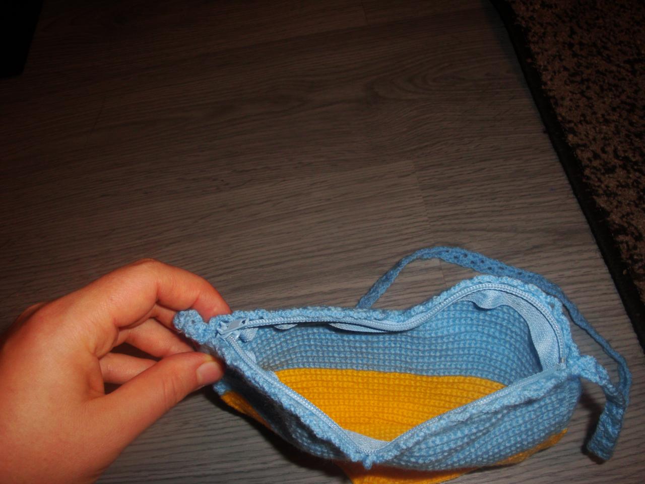 сумка вязаная в виде сердца желто-голубого цвета, оригинальная ручная работа, ограниченное количество