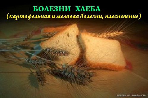 Болезни хлеба вызываются развитием в нем некоторых микроорганизмов. Наиболее часто встречается картофельная болезнь хлеба и плесневение. Очень редко хлеб поражают возбудители меловой болезни и покраснения мякиша. Все виды болезней делают хлеб непригодным к употреблению.