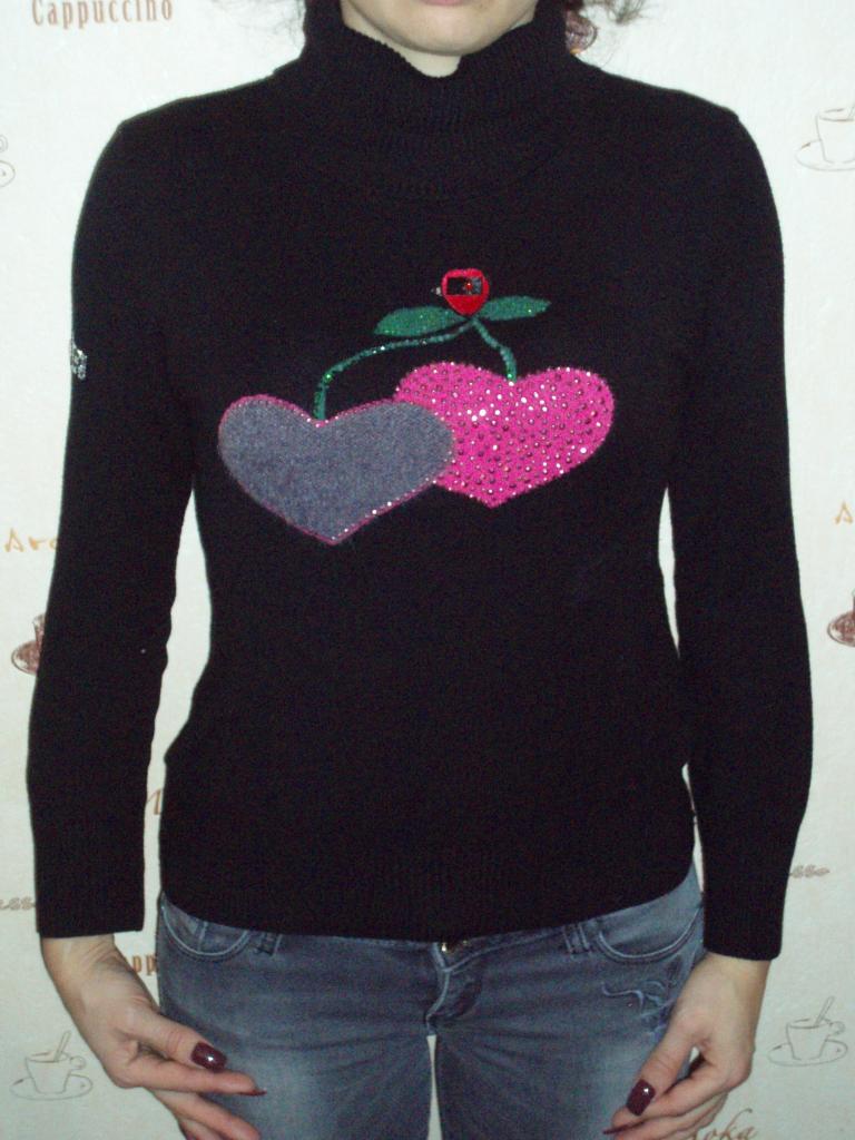 5. Черный тоненький свитер с сердечками VDP CLUB (Турция, S), хорошо тянется приятный к телу. Цена - 100 грн.