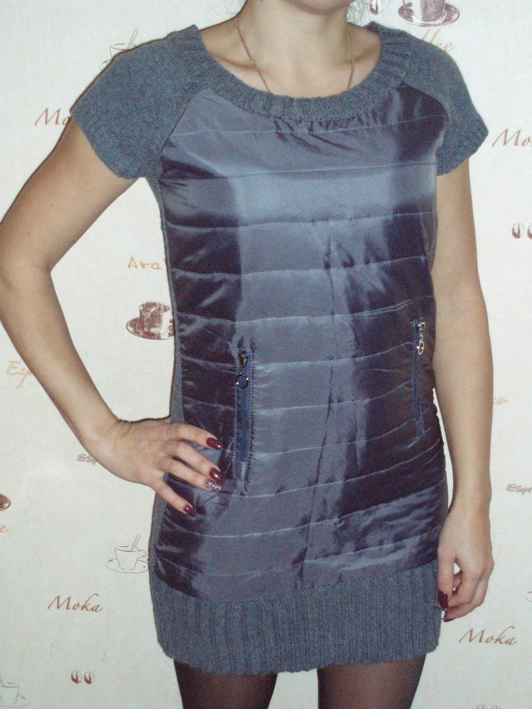 9. Туника серая с болоневой вставкой впереди MONCLER с карманами на змейке по бокам (100% cotton, Турция, S-M). Есть еще теплый съемный воротник, который по-разному можно моделировать. Состояние нового, одета 1 или 2 раза. Цена - 250 грн.