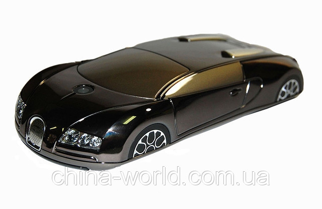 Bugatti Стильный мобильный телефон на 2 сим-карты с русскоц клавиатурой. Оригинальный дизайн телефона очень напоминает модель автомобиля VIP класса Bugatti Veyron. Телефон-автомобиль начинает сигналить и мигать фарами во время входящего звонка.