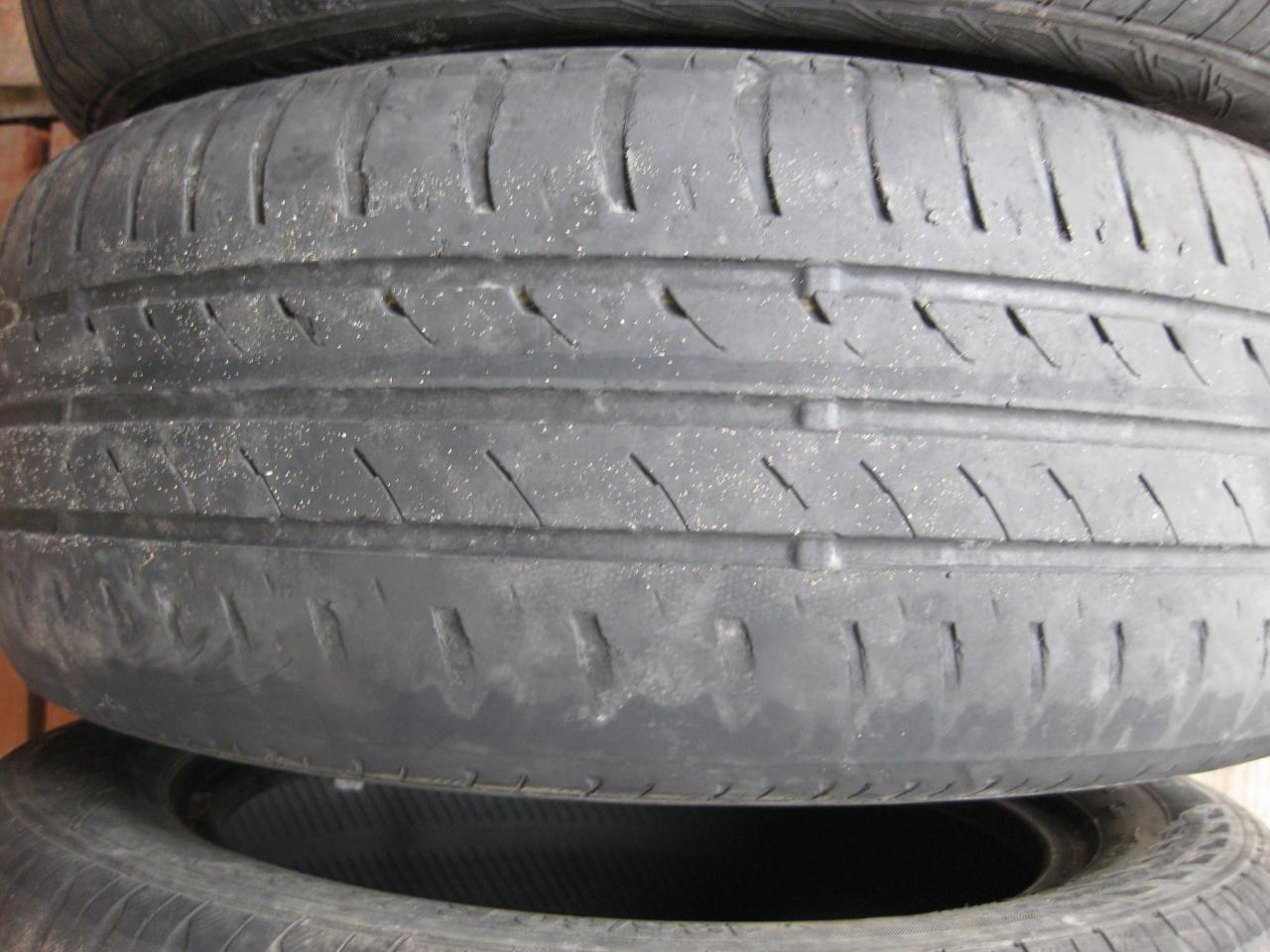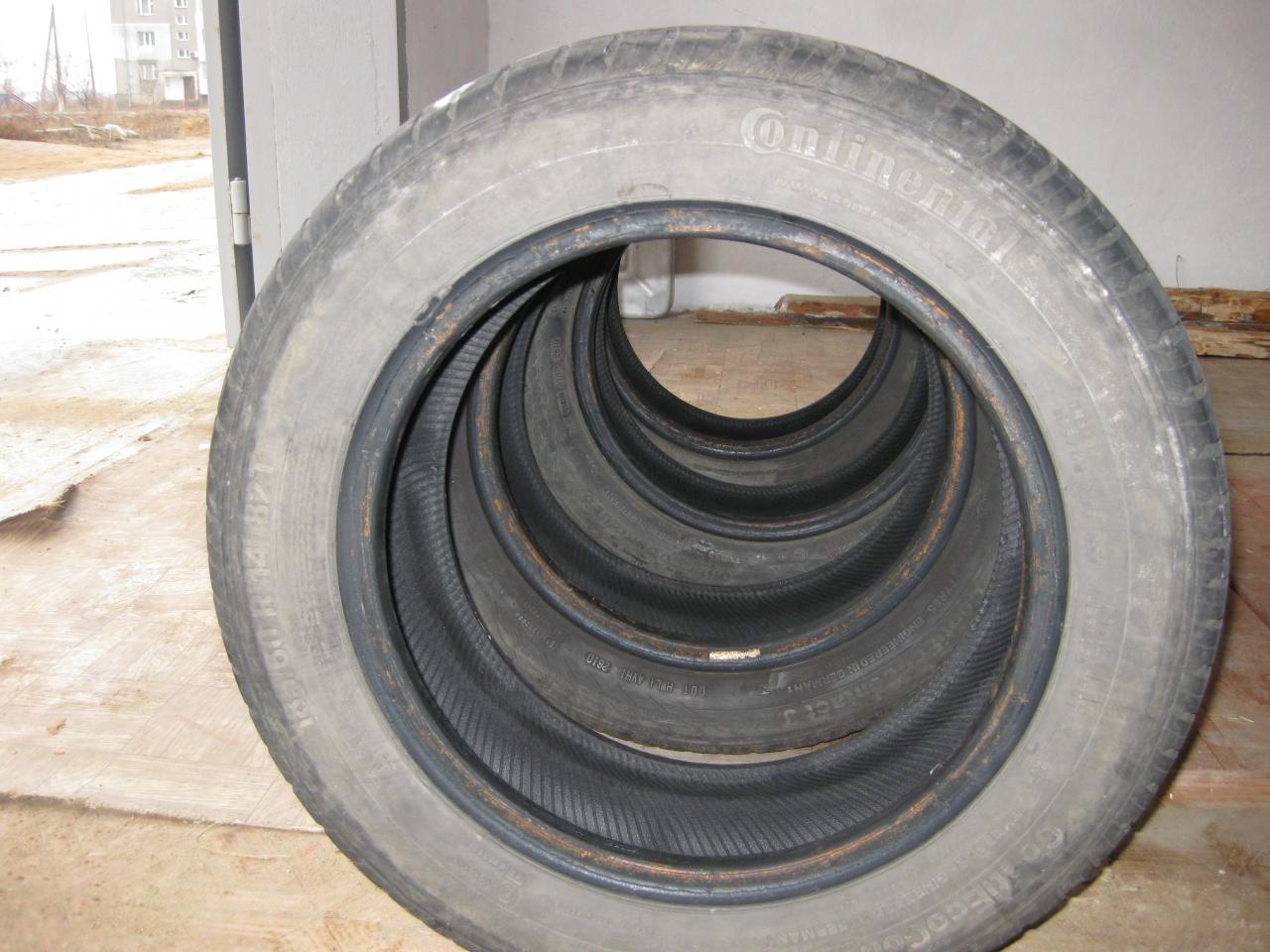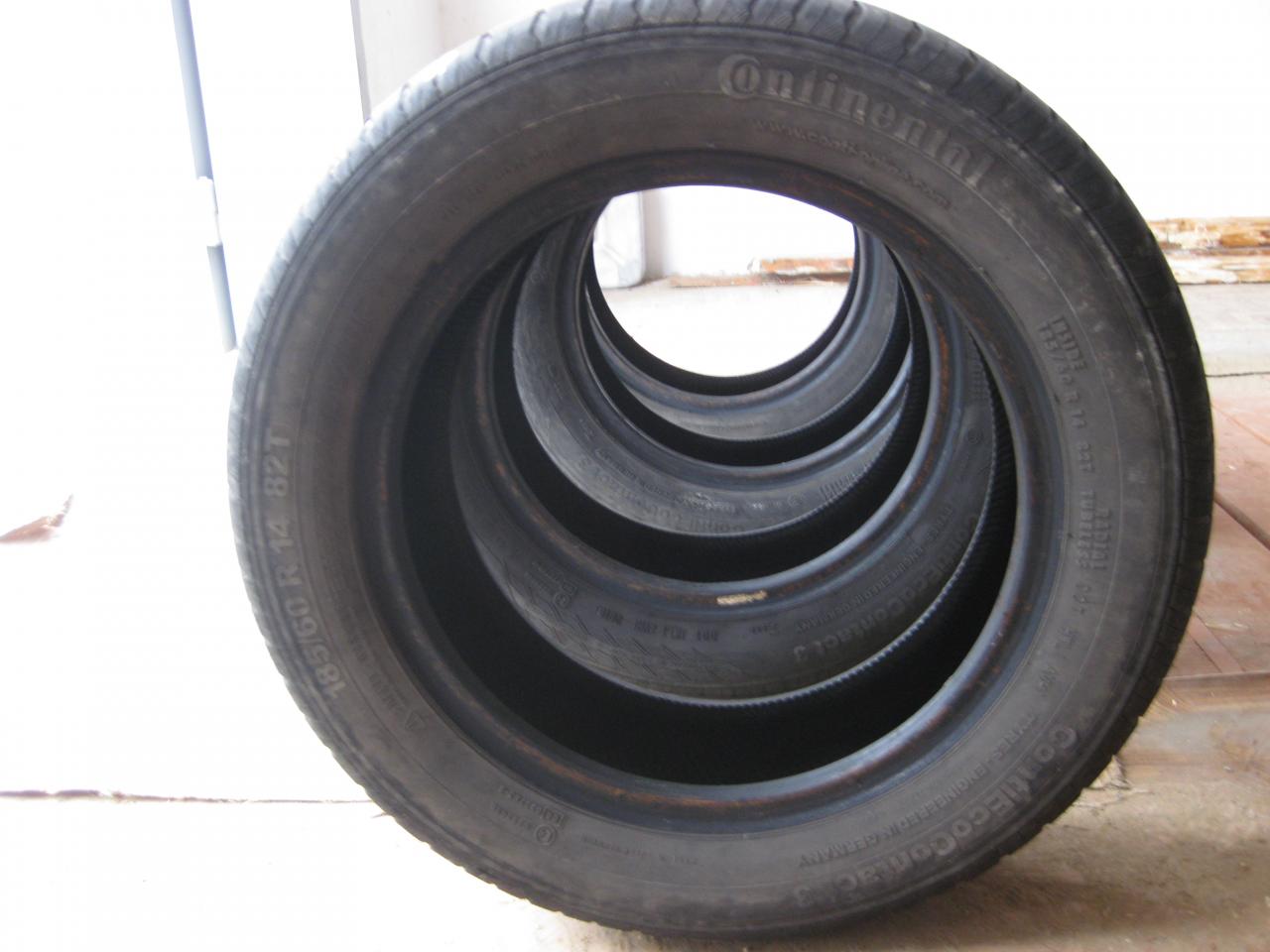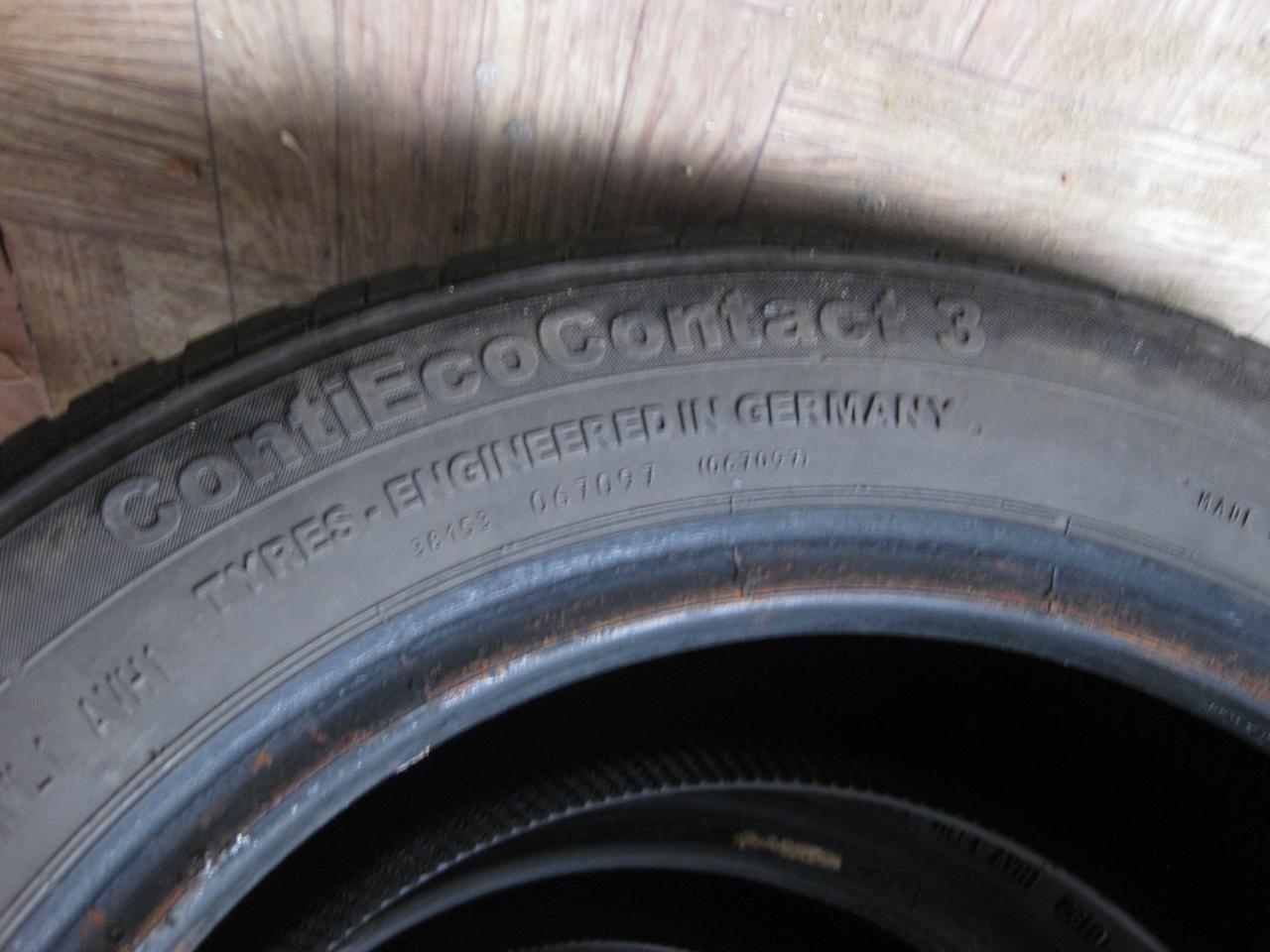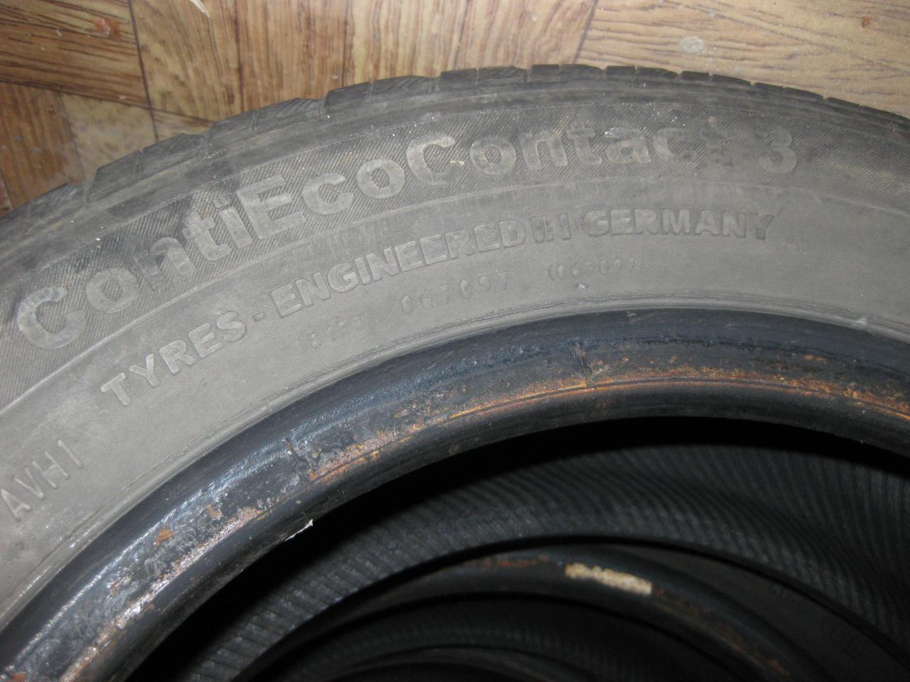 Продам комплект Continental ContiEcoContact 3 185/60/R14 82T, 26 неделя 10 года. Одна пара достаточно в неплохом состоянии. Цена 700 грн. Вторая пара несколько стерта с одной стороны (невовремя сделал развал). Цена 500 грн. Состояние видно на фото. Если комплектом, за все 1000 грн.