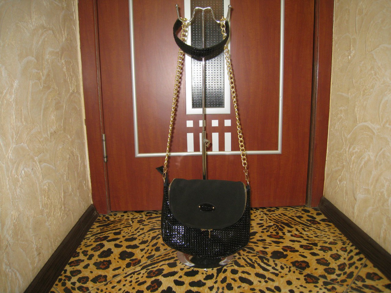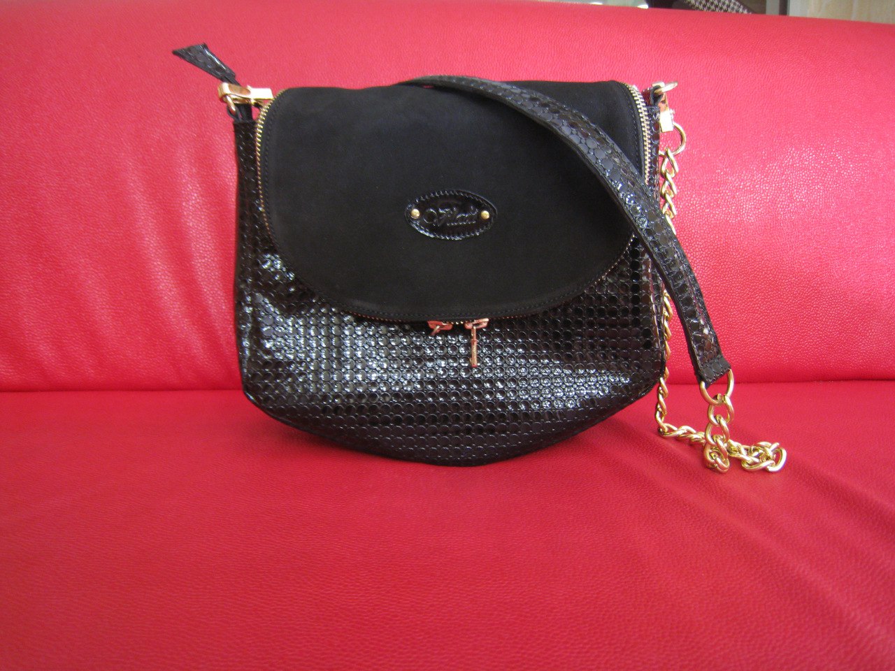 Размеры смогу чуть позже написать, а материал - черная кожа, только хотелось бы разной текстуры, если это возможно. Чтобы сумочка подходила и к лаковым туфлям и к просто кожаной обуви черного цвета.
