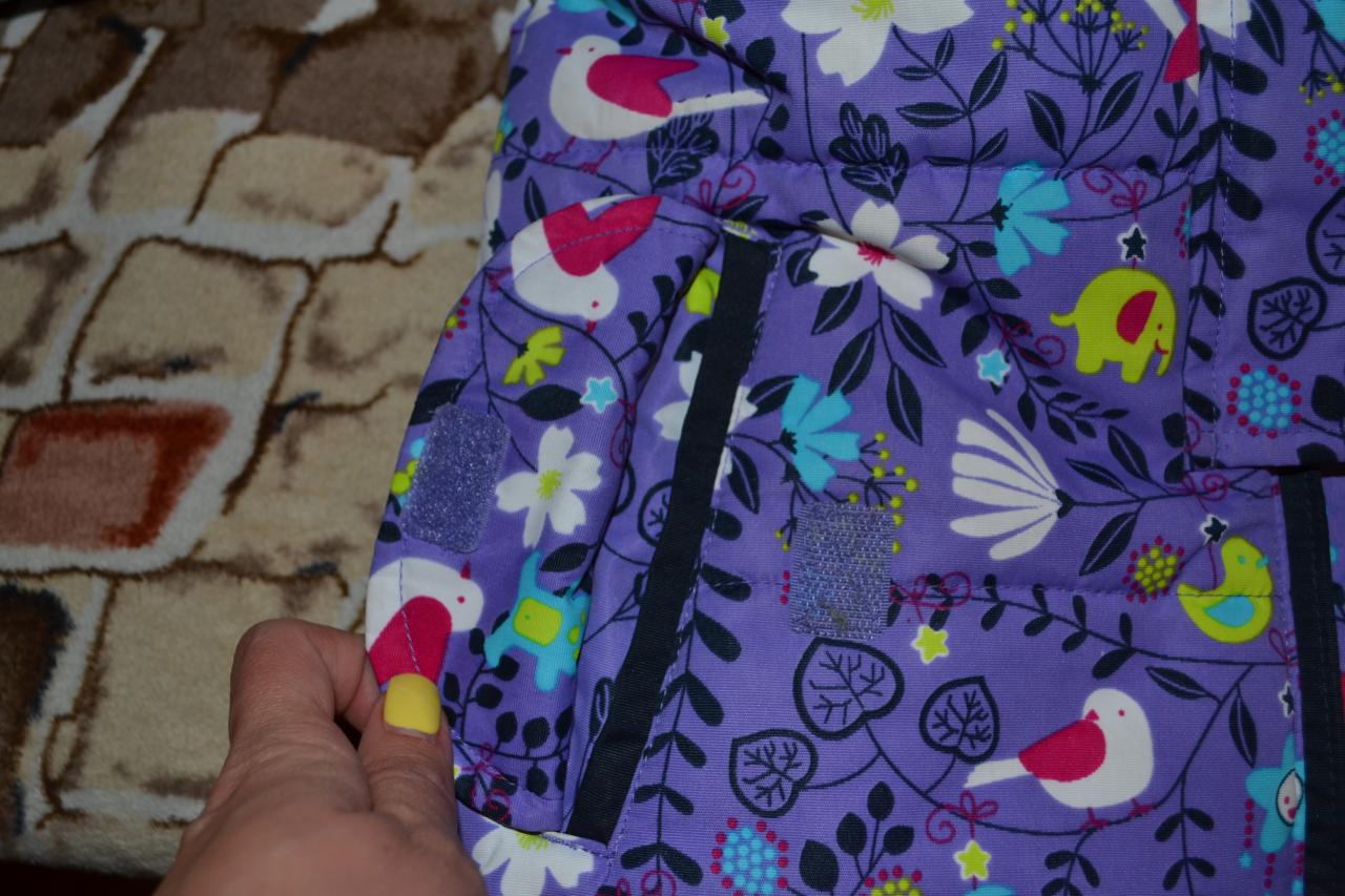 На куртке есть два кармашка на липучках.