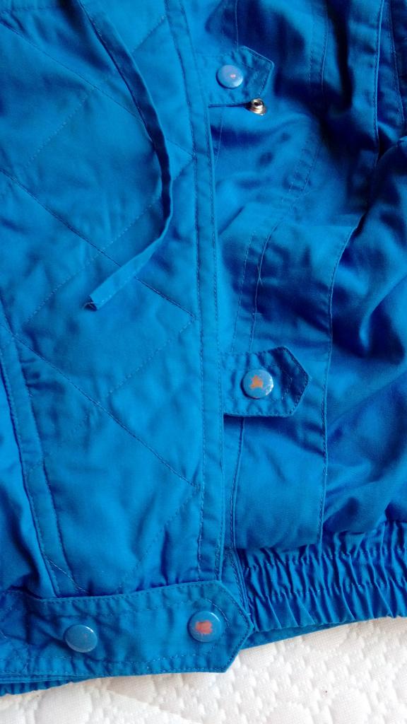 продам б.у. куртку 92 р-ра, сверху текстиль, утеплитель синтепон. На капюшоне пятнышко от клея, на некоторых кнопочках стерта краска, в целом состояние очень хорошее. В подарок отдам варежки с пищалкой. 50 грн, Вузовский