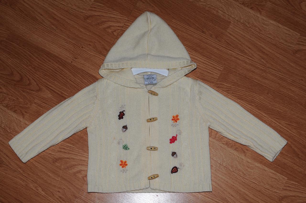 Вязанная кофточка с капюшоном и деревянными пуговками 24м. 80 грн