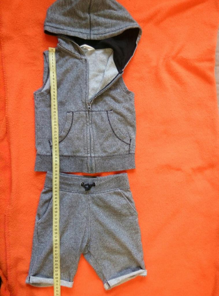 3) h&m, Жилет + шорты, темно-серый меланж.х/б, супер-качество! мега-практичный!!! (жилет, на размер больше, еще носим, купили специально такой же, т.к. самый практичный вариант одежды на круглый год!)