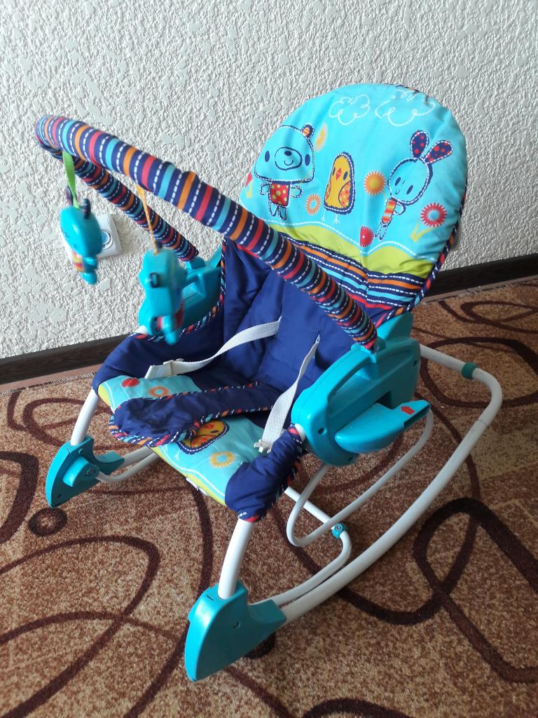 Продам нашу качелю Fisher Price Swing'n'Rocker. Причина: выросли и уже не пользуемся. Состояние очень хорошее, все работает. Если ребенок уснул в шезлонге, то есть подножка, которая позволяет поместить шезлонг в практически горизонтальное положение для удобства малыша. Цена 1500 грн. Возможен торг.