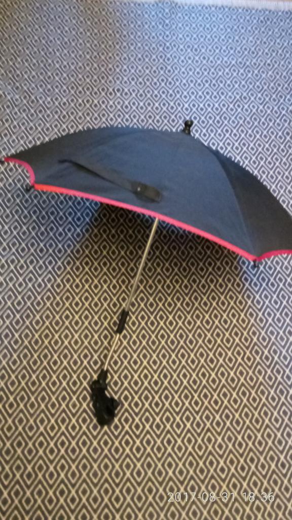 - Зонтик с UF защитой от солнца и на случай непогоды в той же черно-красной гамме, покупала отдельно.