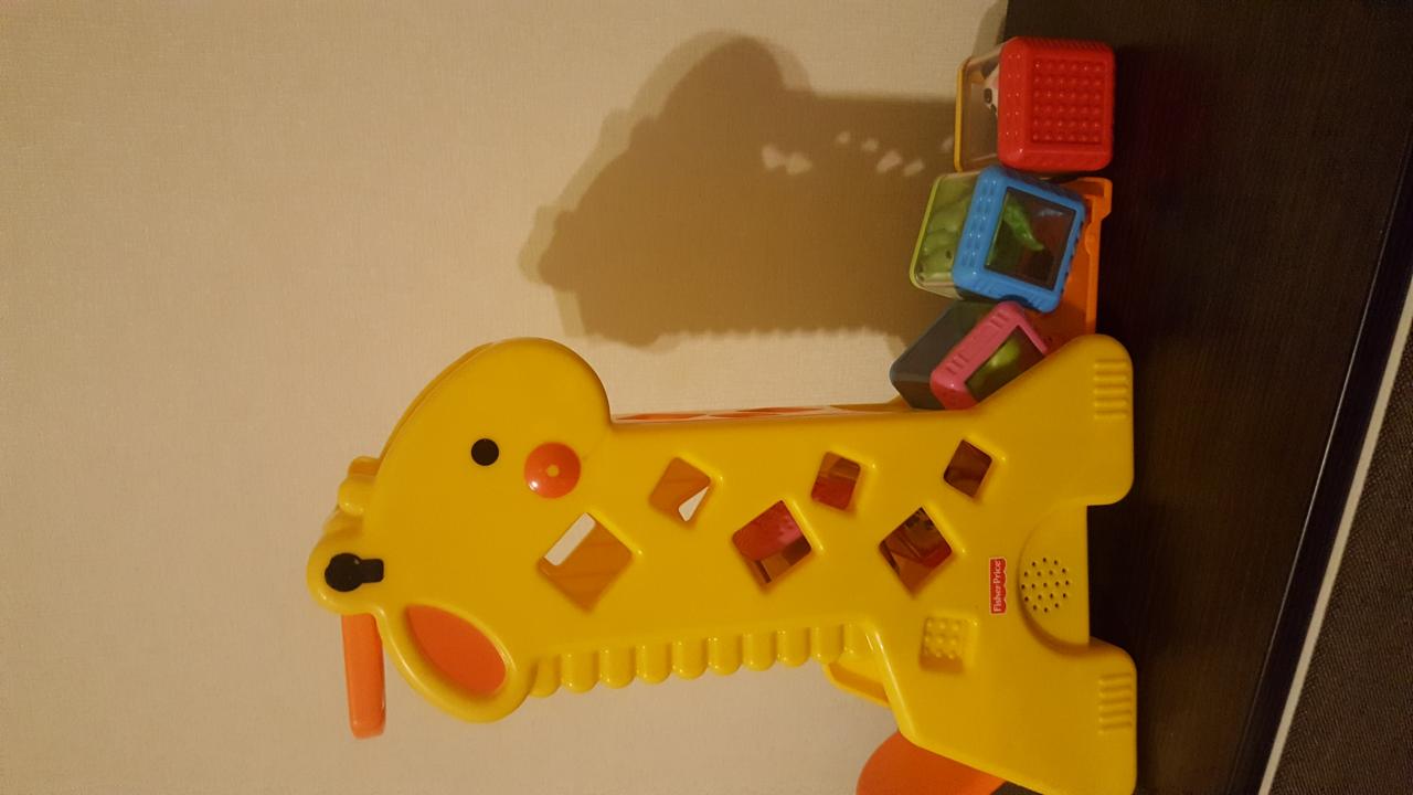 Чудо-жираф и 5 кубиков дарят малышу множество вариантов игры. Ребенок может играть отдельно жирафом, отдельно кубиками. Вкладывая кубики в жирафа, малыш услышит веселую музыку. Все кубики, которые ребенок вкладывает в игрушку скапливаются в ее основе. Подняв специальные дверцы, малыш получает все кубики для дальнейшей игры. Ребенок охотно будет исследовать кубики, ведь каждый из них имеет рельефную поверхность и содержит в середине животное. Игрушка способствует развитию координации движений ребенка, развития его тактильных ощущений и пониманию причинно-следственных связей. 300грн