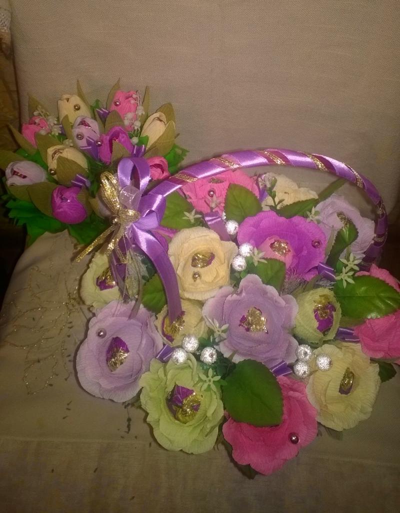 Представляю вашему вниманию подарки на 14 февраля, 8 марта ,а также все другие праздники. Это конфетные букеты, выполнены вручную на любой вкус и с любыми конфетами по желанию. От бюджетных букетов до эксклюзивных авторских. Цена от 40грн. Т. 066 260 92 78. Выполню заказ за несколько дней.