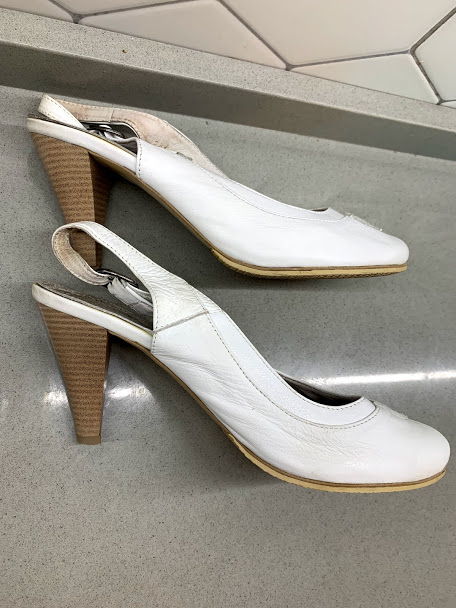 Полностью кожаные туфельки белоснежного цвета. Очень, очень удобная колодка, невысокий каблук (брала с собой балетки, но так и не пригодились), целый день в них ходила и танцевала.