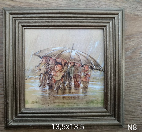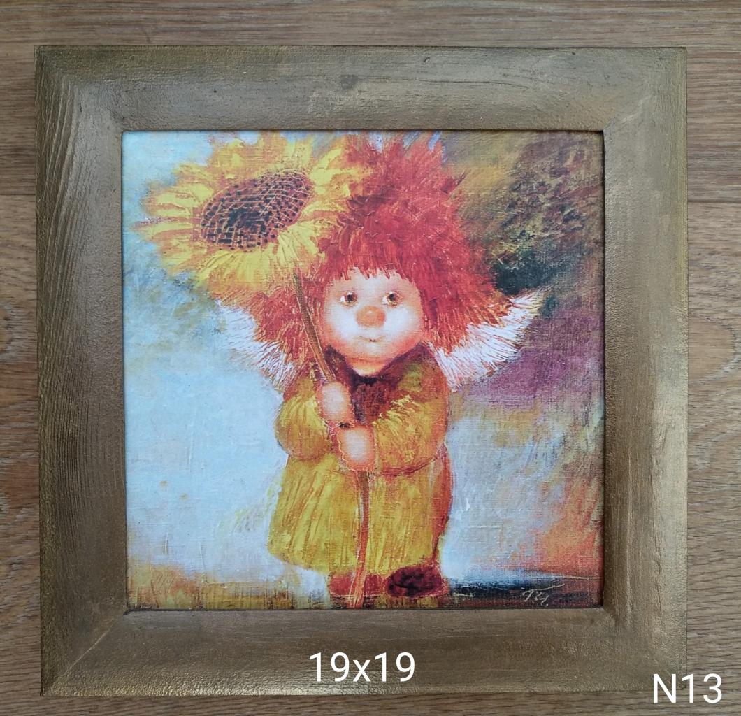 Картинки в деревянных рамочках. 13,5х13,5см. Очень мило смотрятся. по 80 грн.