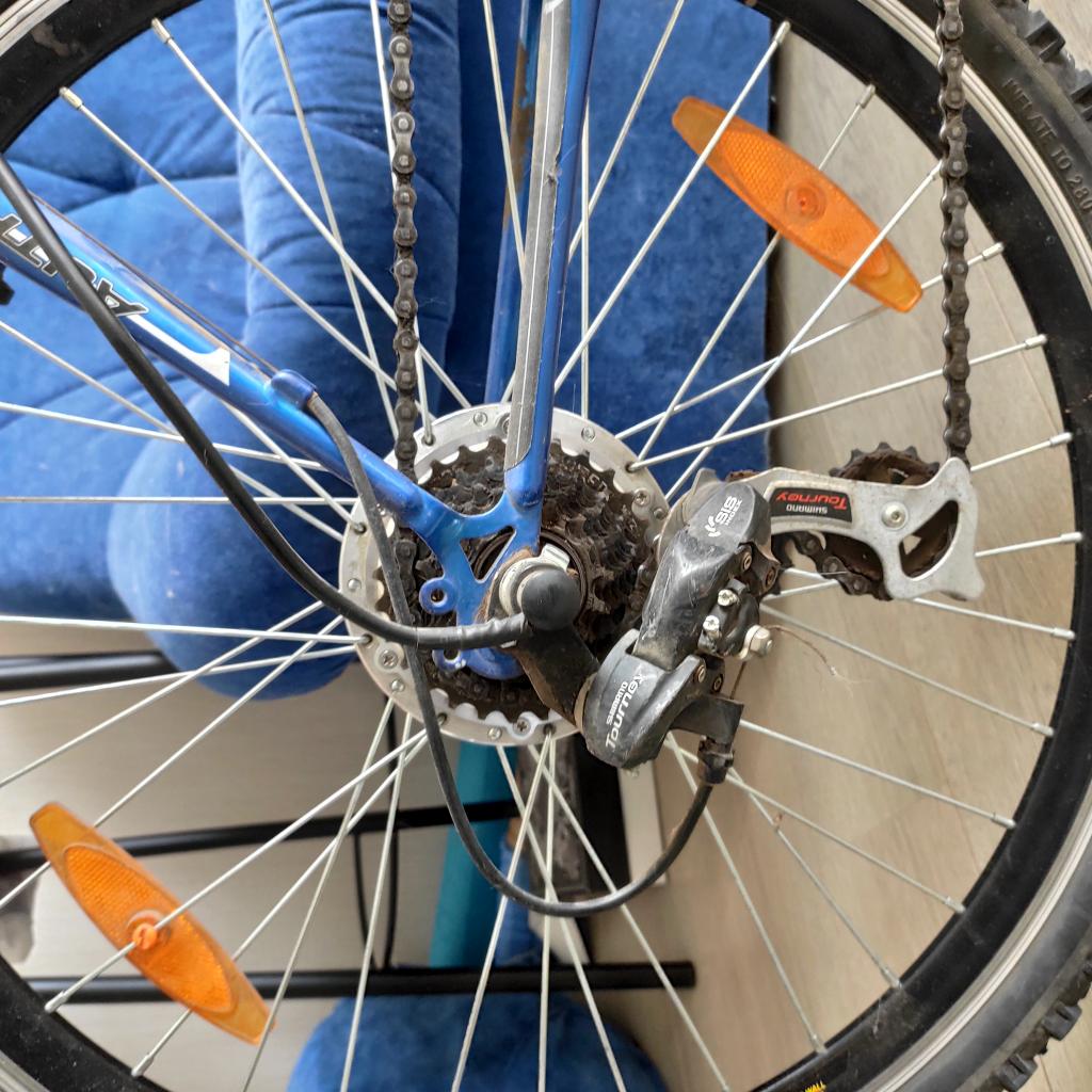 В подарок отдаю всё навесное оборудование: мощная двойная фара "сова" с модифицированными TIER линзами (как в автомобиле) с зарядкой, велокомпьютер (спидометр, одометр, хронометр и ещё куча функций), звонок, подножка, "мигалка" на ниппеле переднего колеса, мощный задний габарит "мигалка" на 5 режимов + лазерная подсветка.