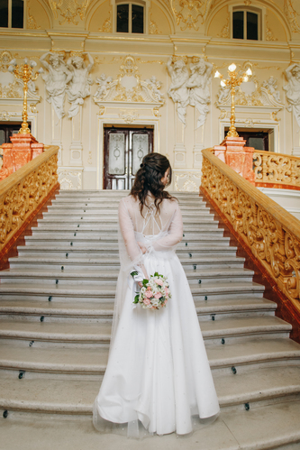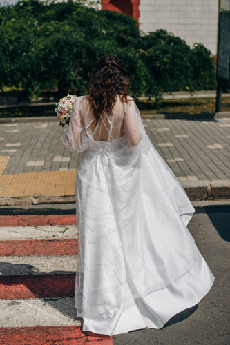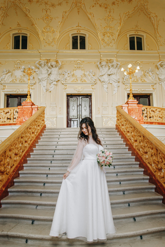 За счёт накидки у Вас будет два платья, что интересно смотрится на самой свадьбе и в дальнейшем на фото
