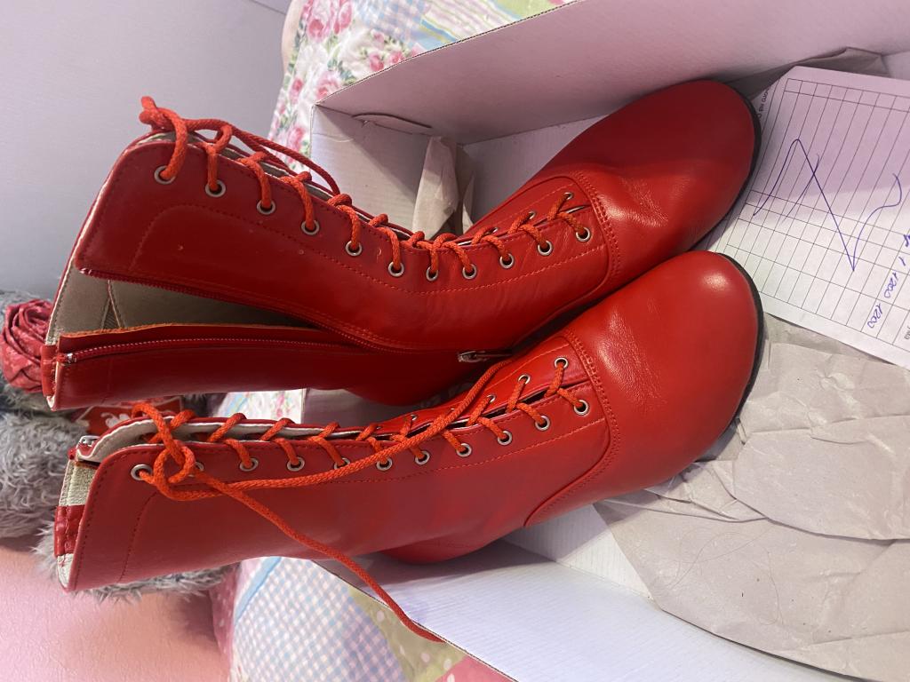 Продам, в ідеальному стані ( дивіться фото), червоні жіночі народні чоботи 36 розміру.