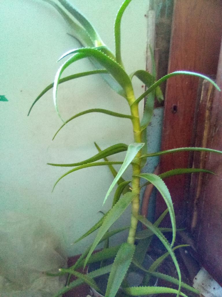 Был высокий цветок 1.4 метра. Поломался от веса ровно напополам. Теперь 2 части по 70см. Верхушку срезал для укоренения.