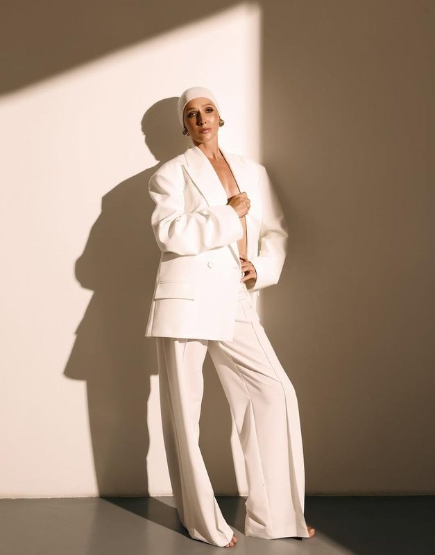 Осадча в жакеті на голі груди й босою наробила сонячних світлин.