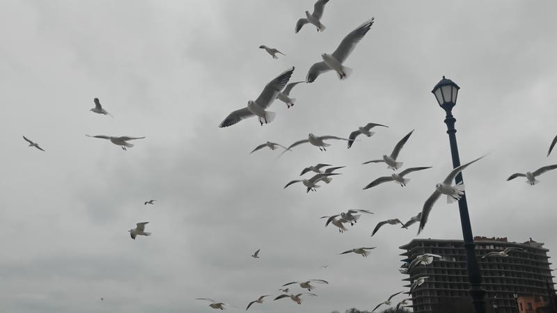 Как всегда, покормила чаек. А они отблагодарили воздушной акробатикой!