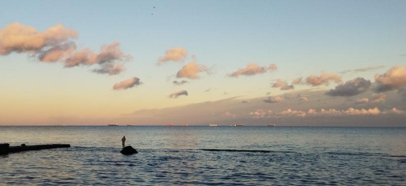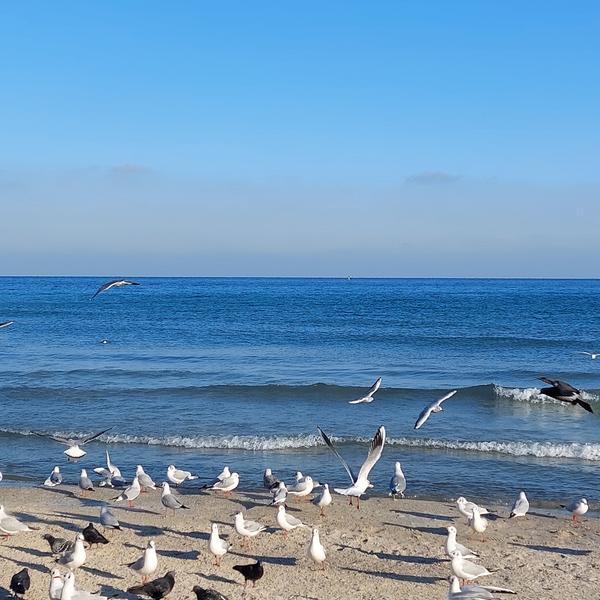 Сегодняшняя моя локация - Черноморка. На удивление было много людей. Даже купающегося молодого человека застала. В целом гулять возле моря было приятно, только руки мерзли, когда чаек кормила.