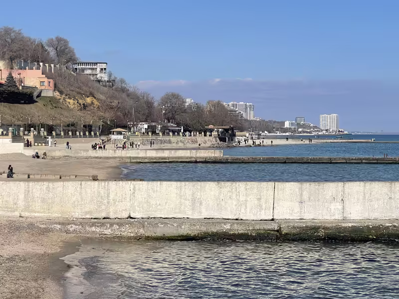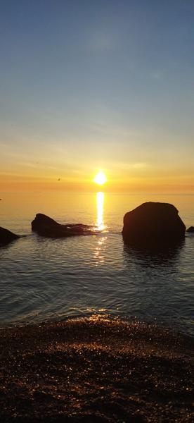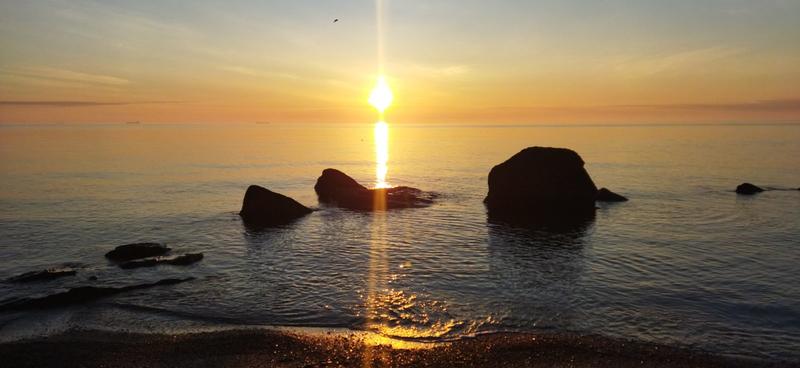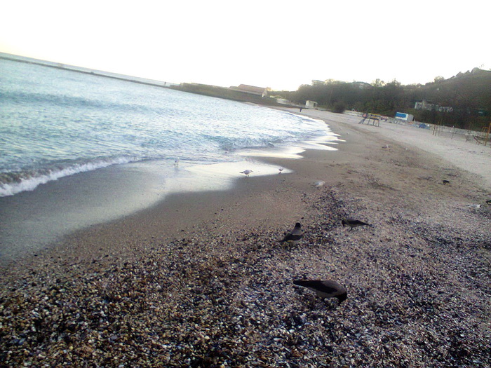 Каменистый берег всё таки никогда не был для нас типичным. Это больше в Крыму и на Кавказском побережье. У нас больше по песочку. И песочек тоже везде разный. На Лузановке серебристый, в городской черте уже желтоватый, а на Бугазе вообще ярко золотистый. Думаю, здесь играет роль присутствие железа в минерале.