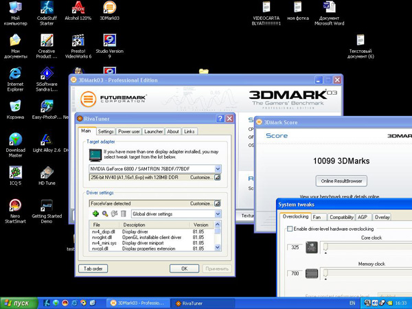 ,НО ВКЛЮЧИВ ВИДЕОКАРТЫ Я СРАЗУ ЗАЛЕЗ В ПОСЛЕДНЮЮ ВЕРСИЮ ПРОГРАМЫ RIVA TUNER ЧТОБЫ ПОСМОТРЕТЬ ИНФУ И ПОПЫТАТСЯ РАЗБЛОКИРОВАТЬ КОНВЕЕРЫ,НО ВОТ ЧТО Я УВИДЕЛ см.рисунок номер 2,Я БЫЛ ОЧЕНЬ УДИВЛЁН,НО НА ВТОРОЙ КАРТЕ БЫЛО ТОЖЕ САМОЕ ПРИ РАЗНЫХ ВЕРСИЯХ ПРОГРАММЫ И ДРАЙВЕРОВ,ТОГДА ЗАЧЕМ ПЛАТИТЬ БОЛЬШЕ,ЕСЛИ ПРОЩЕ ВЗЯТЬ КАРТУ ЗА 200УЕ И НАСЛАЖДАТСЯ ПРОИЗВОДИТЕЛЬНОСТЬЮ 6800ГТ,ПОПРОБЫВАЛ РАЗОГНАТЬ,ЧИП ДО 400 ГОНИТСЯ НО ПОЯВЛЯЮТСЯ АРТЕФАКТЫ,ПАМЯТЬ СЛАБОВАТА В РАЗГОНЕ,ВСКРОЮ И ПОСМОТРЮ ЧТО ТАМ И КАК ВНУТРИ,КАКОЙ ФИРМЫ ПАМЯТЬ И ТАК ДАЛЕЕ,ВЫВЕШУ ФОТКУ ПОТОМ,КОГО ЗАИНТЕРИСОВАЛО МОГУ ПОМОЧЬ ДОСТАТЬ ВИДАХИ ЗА 200УЕ,НОРМАЛЬНАЯ ЦЕНА ДЛЯ ОДЕССЫ))))))))ПИС