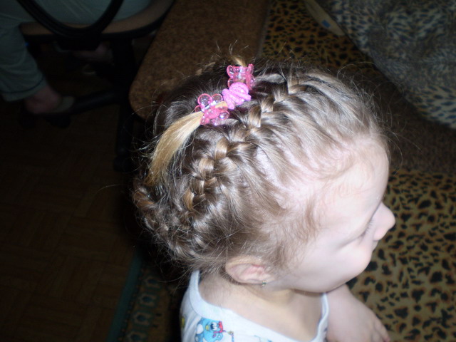 Моей нравится "веночек" - смотрится эффектно, быстро причёсываемся, держится весь день: