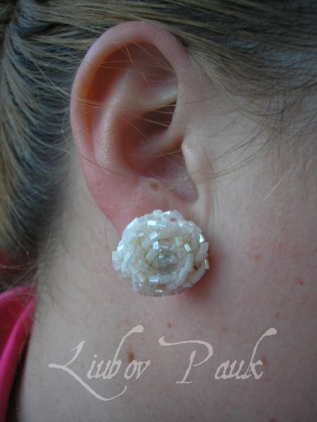 серьги-гвоздики выполнены из японского бисера и хустальных бусин, они сверкают и привлекают внимание своей нежностью