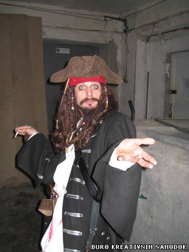 Наш костюм - это максимально точная копия костюма персонажа фильма. В этом году у нас брали Джека на протат многие клубы города для проведения пиратских вечеринок, и остались очень довольны.